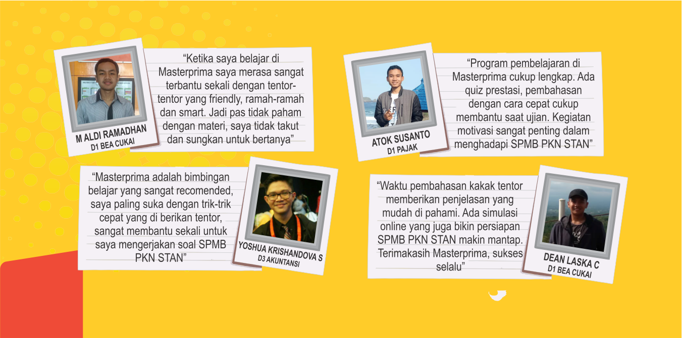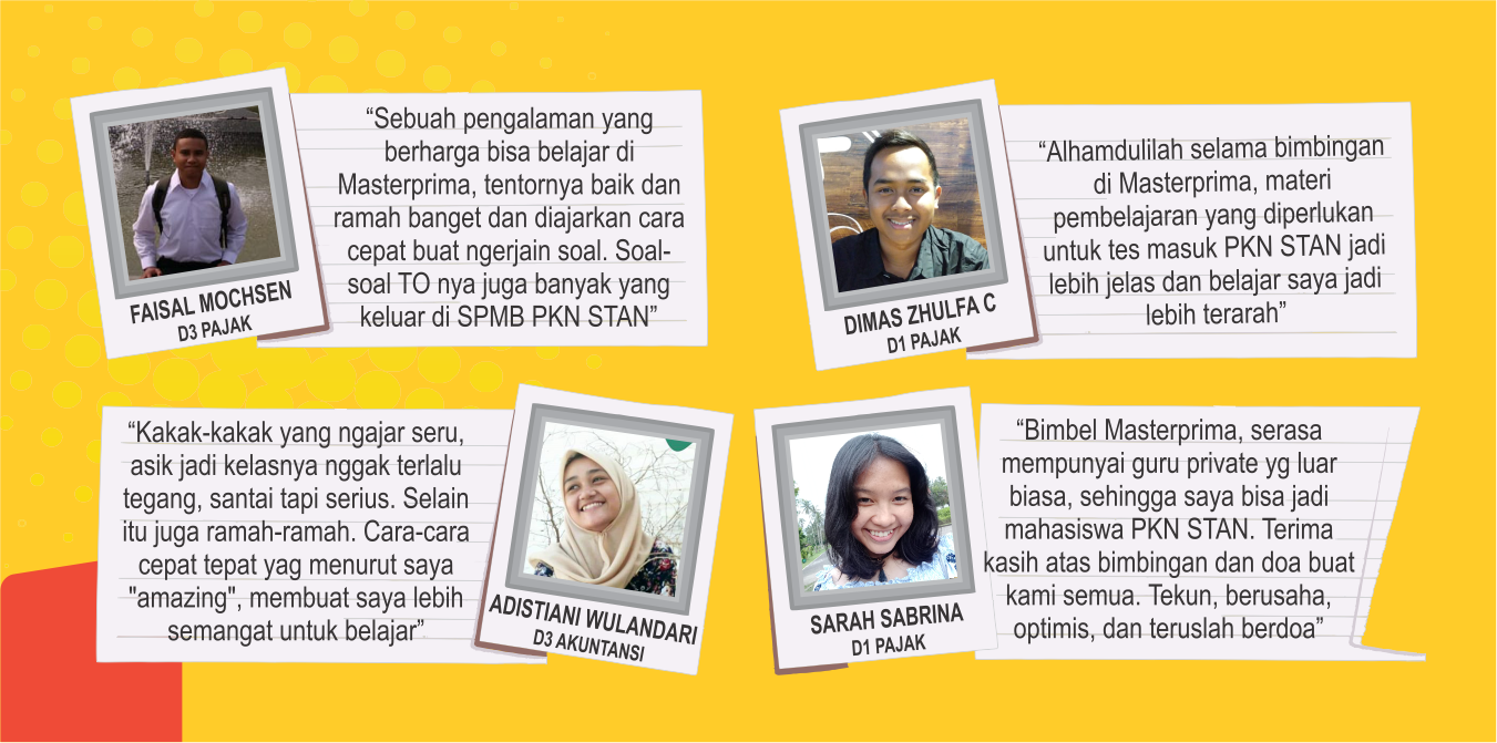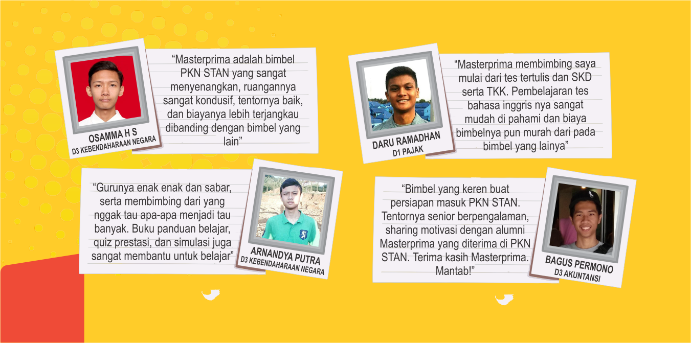 Pengajar di Masterprima telah melalui standardisasi plus tentor alumni kedinasan.