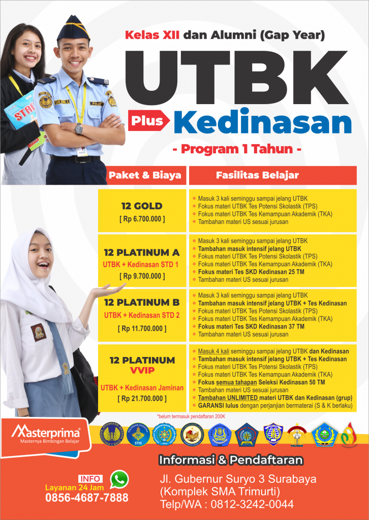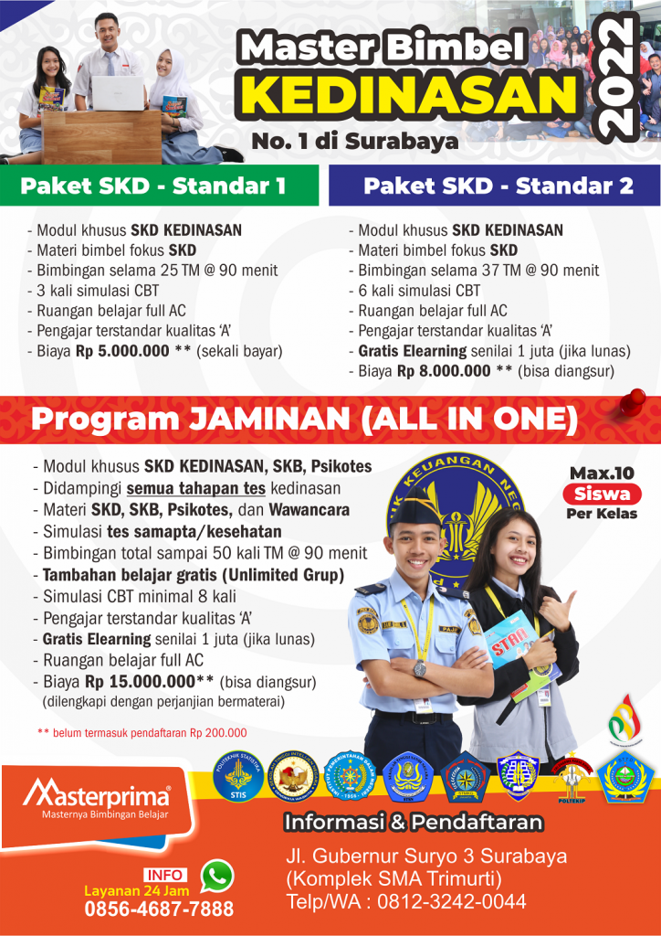 Masterprima Hadir di Surabaya Sebagai Bimbingan Belajar Khusus Persiapan Masuk Sekolah Kedinasan (PKN STAN, IPDN, polstat STIS, STMKG, STIN, Poltek SSN, PPOLTEKIM, POLTEKIP, POLTEKPEL, POLTEKBANG, POLTRADA, PPI) Terbaik di Indonesia